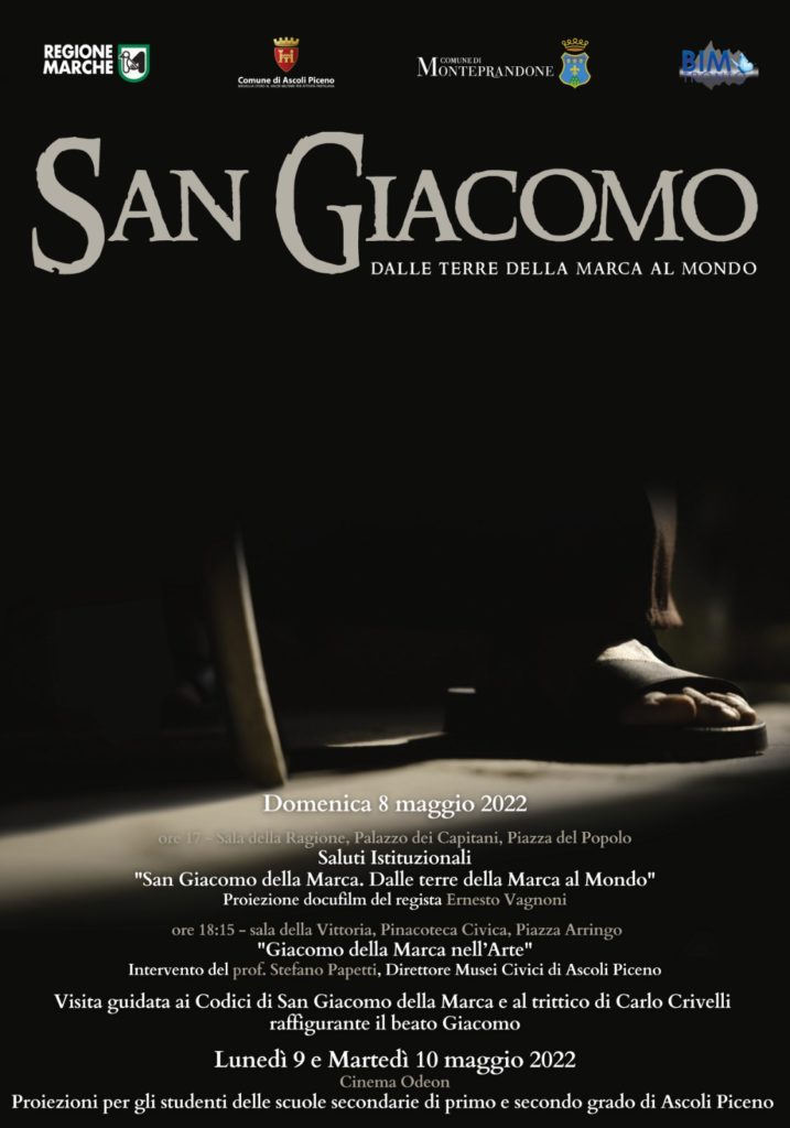 Nell’ambito dell’Accordo per la custodia temporanea della collezione libraria dei Codici di San Giacomo della Marca, siglato dai Comuni di Ascoli Piceno e Monteprandone, le Amministrazioni comunali hanno previsto l’organizzazione di iniziative di promozione culturale per raccontare lo stretto legame tra le due Municipalità attraverso la figura del Santo, patrono di Monteprandone e compatrono della Regione Marche.