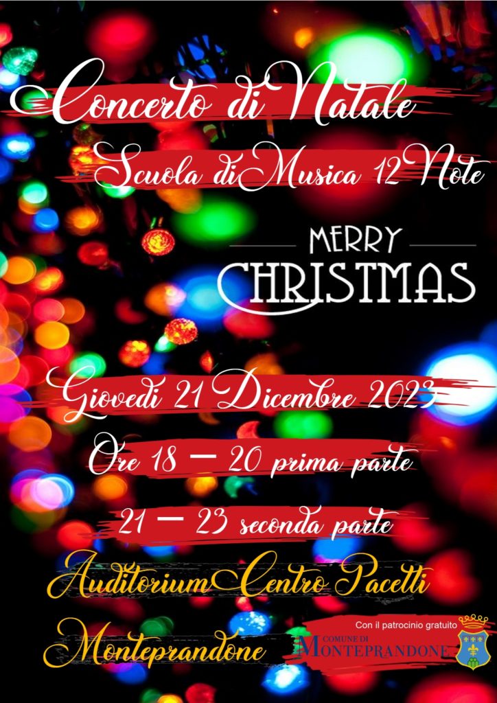 La scuola di musica 12 Note tornerà giovedì 21 dicembre 2023 con il consueto concerto natalizio degli allievi della scuola presso l’Auditorium Centro Pacetti di Monteprandone. Dalle 18 gli studenti e i docenti della scuola proporranno classici natalizi e rivisitazioni in chiave pop delle più belle melodie del Natale e non solo.