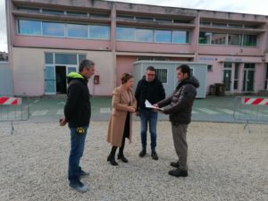 Con il sopralluogo e le fasi propedeutiche all’installazione del cantiere, questa mattina martedì 19 marzo, alla presenza del sindaco Sergio Loggi, del vicesindaco Daniela Morelli, del progettista Arch. Giorgio Marasca, del proprietario della Marco Costruzioni ditta di Giulianova che si è aggiudicata l’appalto, sono partiti i lavori di realizzazione del nuovo polo scolastico “Carlo Alberto Dalla Chiesa” di via Benedetto Croce.