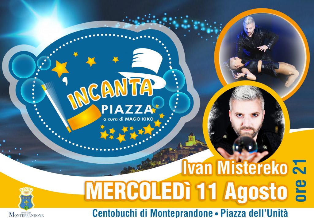 La rassegna si chiuderà mercoledì 11 agosto, quando a salire sul palco sarà Ivan Mistereko, prestigiatore professionista specializzato in magia da scena e grandi illusioni che proporrà lo spettacolo “The magic touch”. La serata ingloba in un unico spettacolo differenti forme artistiche: illusionismo, stage magic, escapologia, mentalismo e grandi illusioni, danza contemporanea.