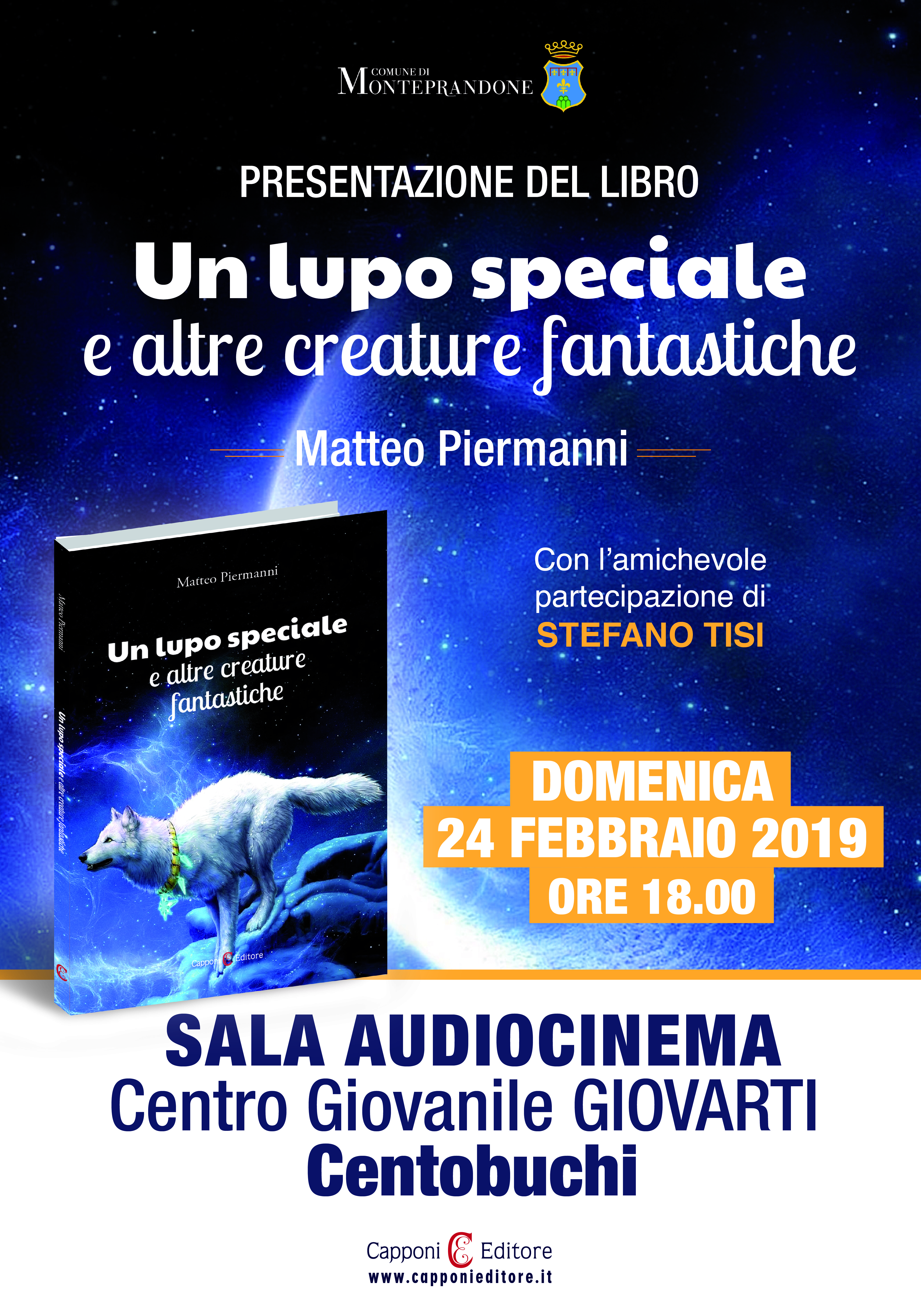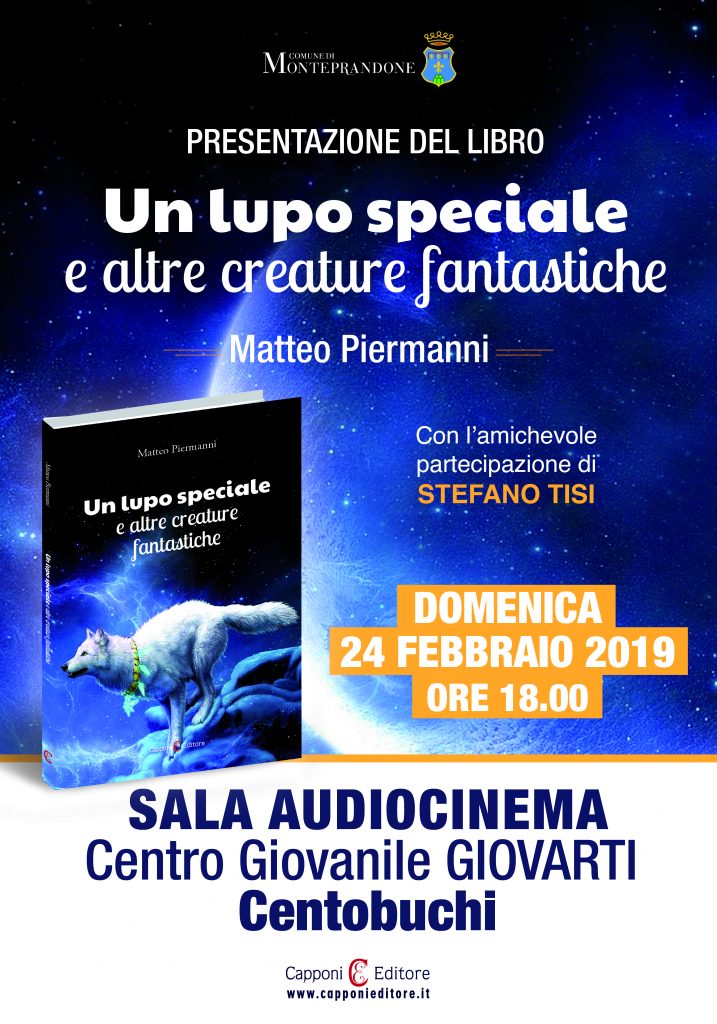 Domenica 24 febbraio, alle ore 18, presso il Centro GiovArti di Centobuchi, verrà presentato il primo libro del giovanissimo autore monteprandonese Matteo Piermanni. Ad introdurre l’evento il comico e cantante Stefano Tisi. L’evento, curato dalla Capponi Editore, è patrocinato dal Comune di Monteprandone.