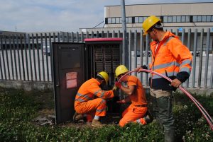 I lavori hanno avuto inizio a partire da via Salaria; in questi giorni proseguono in via del Lavoro e quindi nelle diverse zone del territorio comunale. A valle della posa della fibra ottica saranno progressivamente implementate le centraline elettroniche su ciascun armadio stradale e avviati i collaudi per l’erogazione dei servizi alla clientela.