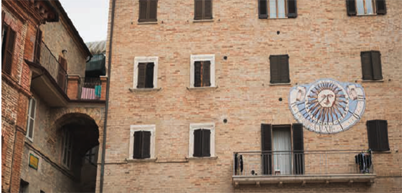 E' uno dei palazzi già presente sin dalla costruzione della prima cinta muraria; di proprietà comunale e restaurato completamente alla fine del XIX secolo nell’ambito della ristrutturazione generale di Piazza dell’Aquila, è caratterizzato dalla presenza di quattro cornici in travertino risalenti al XV secolo, ancora ben conservate nonostante i lavori effettuati, e di una meridiana posta al centro della facciata principale. Al piano terra troviamo la sala Consiliare, dove si svolgono le sedute del Consiglio comunale.